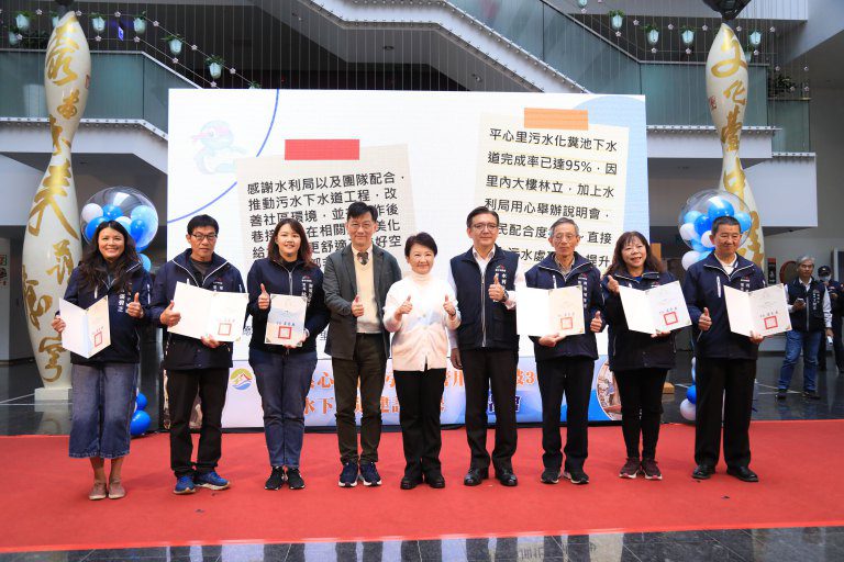 ▲台中市污水接管戶數累計突破30萬戶,17日舉行記者會,市長盧秀燕感謝水利局同仁及各區議員、里長共同努力,並頒發感謝狀給多位里長,讓台中邁向更宜居的幸福城市。(圖╱記者孔亮云翻攝)