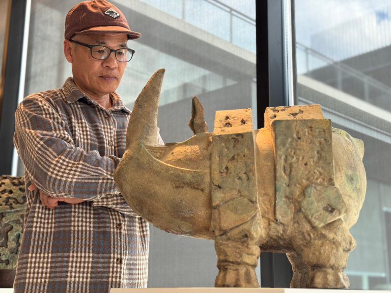 以活潑俏皮泥塑犀牛走紅的陶藝家陳金旺,在一埸《犀旺邸家》個展,突顯他獨特的藝術語彙,並透過仿青銅新作犀牛穩健踏實的姿態與力量,詮釋民眾對安居的嚮往與堅持,也深刻映照出年輕世代在低收入、高房價時代,對「家」的渴望與追尋。
