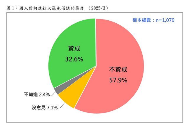 民調問及,贊不贊成柯建銘【全面性罷免國民黨籍41席立委】的主張?”結果發現:19.6%非常贊成,13%還算贊成,23.3%不太贊成,34.6%一點也不贊成,7.1%沒意見,2.4%不知道、拒答。換句話說,最新民意顯示,二十歲以上台灣人,三成三贊成,五成八不贊成,一成沒意見、不知道。不贊成的人比贊成的人多25.3個百分點。值得注意的是,全體公民中,兩成強烈贊成,三成五強烈不贊成。