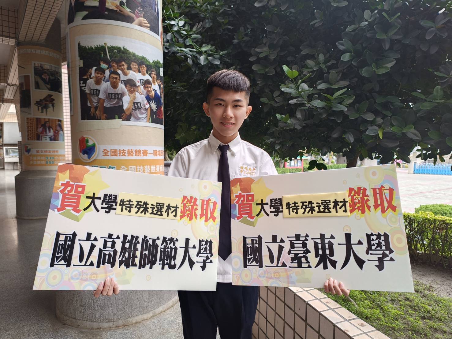 (致用高中普三甲李昀擇同學透過特殊選才,錄取國立高雄師範大學及國立台東大學)