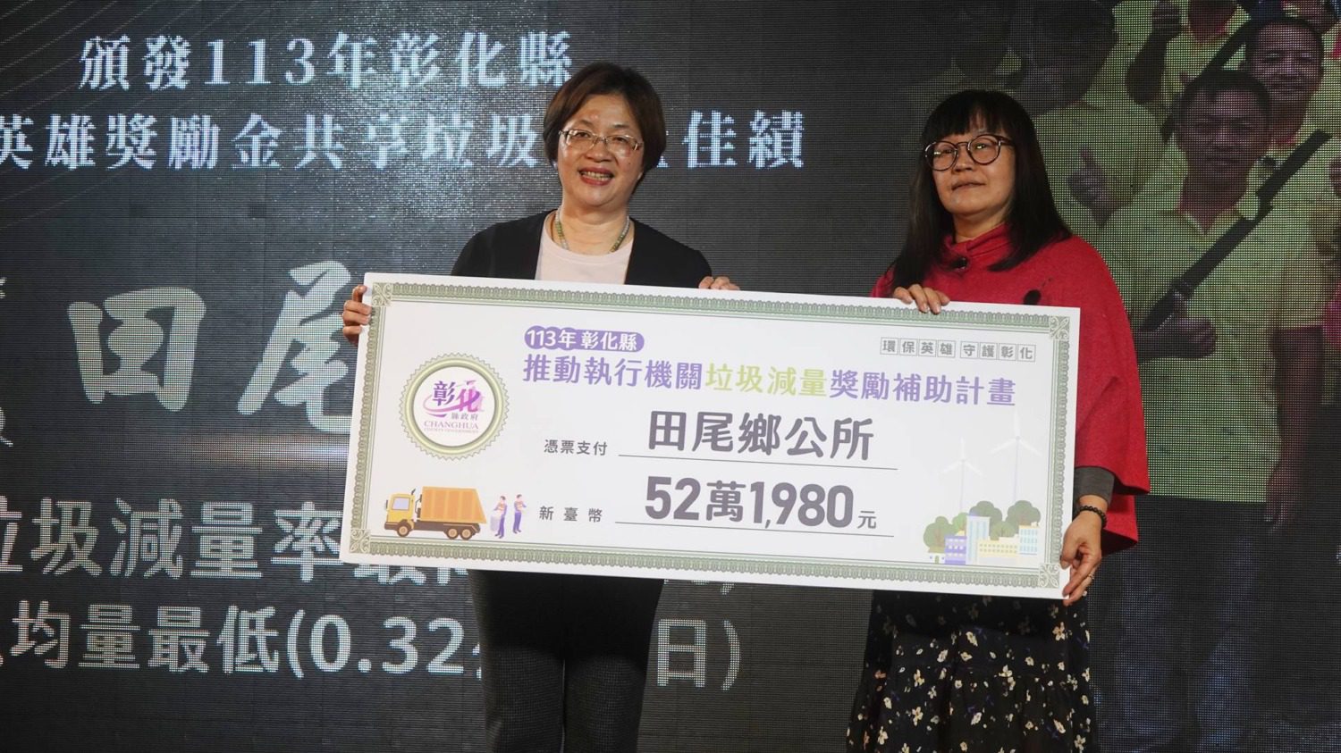 【焦點時報/記者林明佑報導】彰化縣垃圾減量政策成果卓越,自113年7月強化推動垃圾破袋檢查政策,短短6個月全縣垃圾量減少23,641公噸,減幅高達18%,每日人均垃圾量降至0.476公斤,等同於減少全縣1.2個月的垃圾量。縣長王惠美為表彰清潔隊的努力,今(21)日在全國麗園大飯店舉行「頒發減廢英雄獎勵金 共享垃圾减 量佳績」頒獎活動,將原編列的800萬元獎勵金加碼至1,878萬元,其中40%指定直接回饋清潔隊員,以激勵他們持續投入環境保護工作。