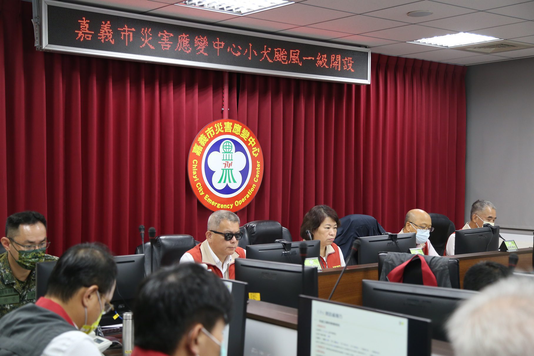 中度颱風「小犬」來襲,中央氣象署已發布海上陸上颱風警報,並將嘉義市納入警戒區域,嘉義市災害應變中心今(4)日中午12時升級一級開設。下午由指揮官黃敏惠市長親自主持工作會議,聆聽颱風動態預報分析,以及市府各局處、經濟部水利署第五河川局、台電、台水與軍方等相關單位整備情形。依據中央氣象署預報及國家災害防救科技中心(DCDR)資料,嘉義市預測10月5日凌晨進入暴風圈範圍,陣風接近10級標準,黃敏惠市長於會議中宣佈,明(5)日停止上班、停止上課,籲請市民做好防颱準備,市府將全力備戰,守護市民安全。