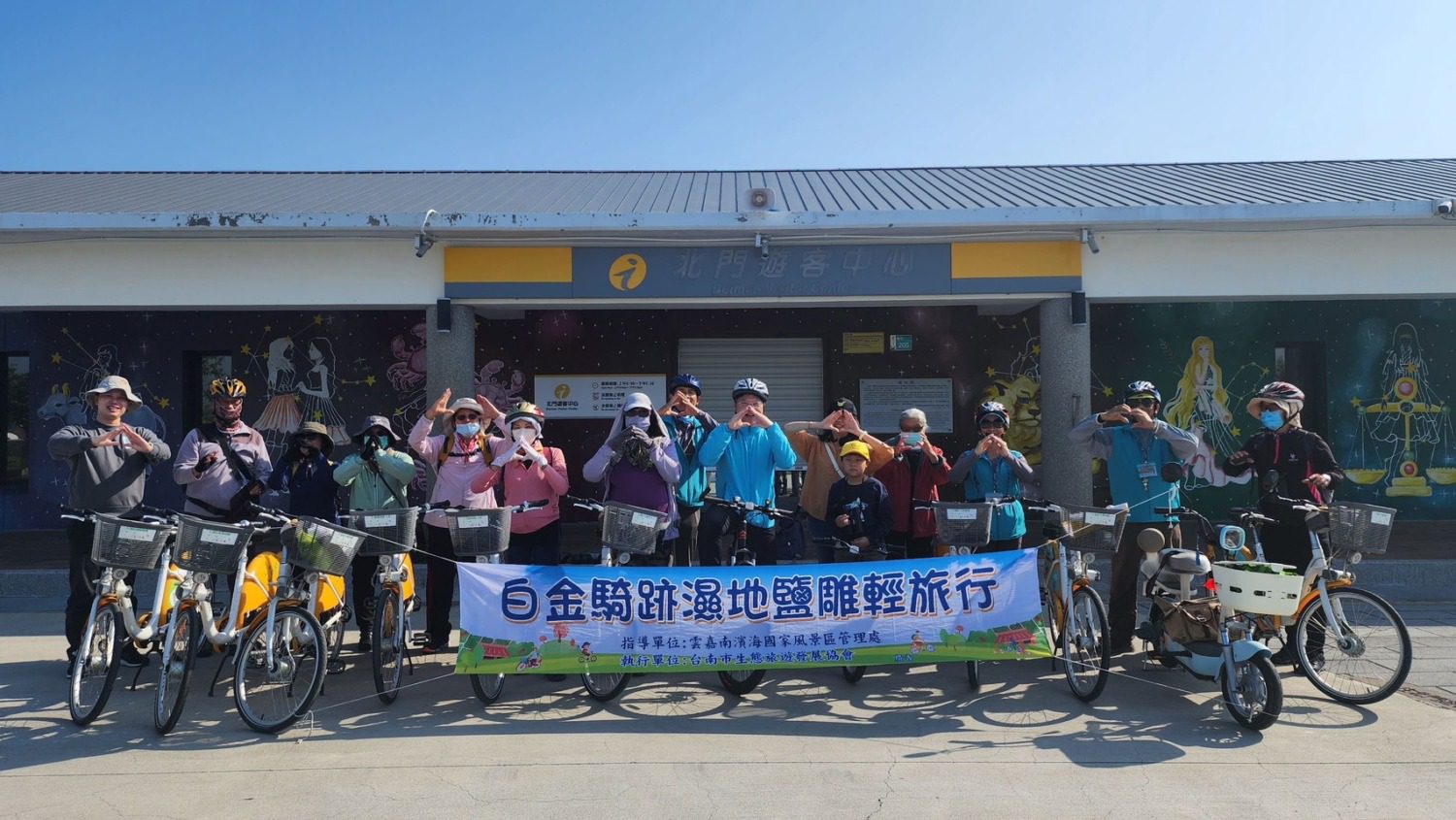 正值候鳥飛抵台南北門濕地的最佳時節,交通部觀光署雲嘉南濱海國家風景區管理處(簡稱雲嘉南管理處)攜手台南市生態旅遊發展協會,推出 「白金騎跡濕地鹽雕自行車輕旅行」,透過結合生態觀察、鹽田文化與自行車慢行體驗,帶領遊客深度探索北門這片珍貴的濕地與鹽業文化。活動自2月至4月共舉辦 8梯次,吸引 116名遊客 熱情參與,讓更多人看見這片土地的獨特魅力。