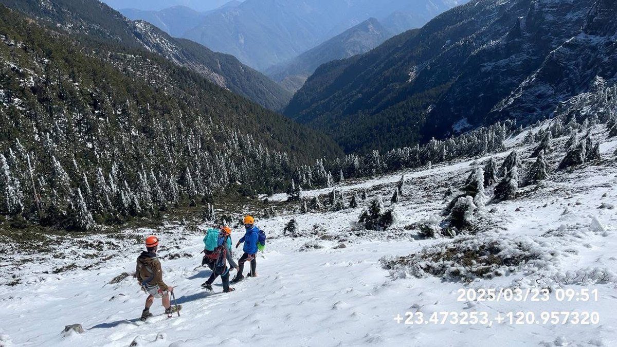 南投縣及其他地區陸續傳出多起山難事故,少登山者因冰雪覆蓋的險峻地勢而遇險。圖/南投縣消防局提供