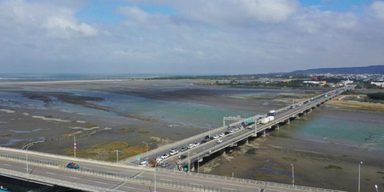 ▲連假首日台61線竹港大橋南下車流路況。(資料照)