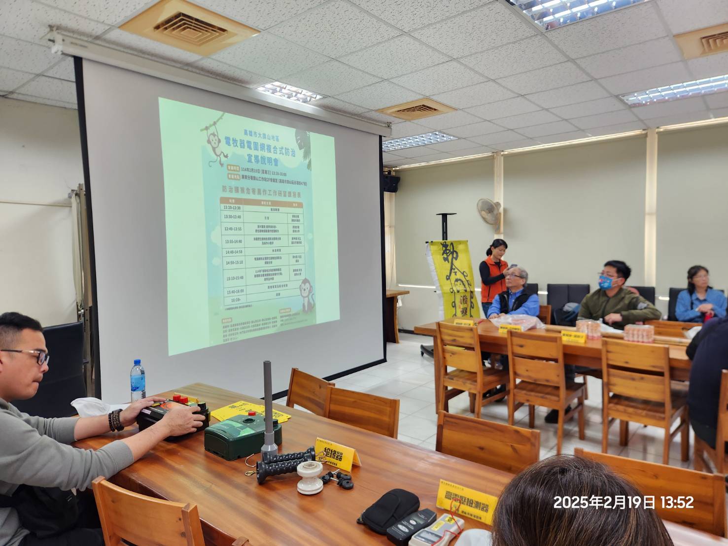 為防治野生動物破壞農作,高雄市政府積極推廣架設電圍網,針對台灣獼猴危害農作物的狀況進行防治。為協助農民熟悉電圍網架設技術,農業局於今(25)日在杉林區農會舉辦說明會,介紹架設技巧與注意事項,並安排參訪鄰近已設置電圍網的農田,讓農民實際觀摩,進一步推廣正確的防治設施設置方式。農業局表示,今(114)年電圍網補助計畫已開放申請,請有需求的農民可就近洽區公所提出申請。