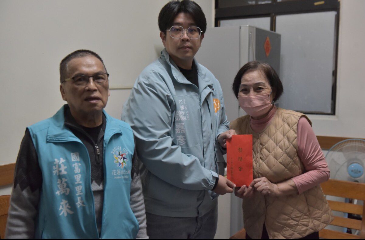 花蓮市長魏嘉彥日前偕同社勞課長蕭子蔚,在國富里長莊萬來的陪同下,前往探視經濟困難的王女士,魏嘉彥除關心其生活狀況,並發放急難紓困金以協助她渡過難關,同時指示社勞課同仁協助轉介民間資源與基金會,以提供更長期的幫助。