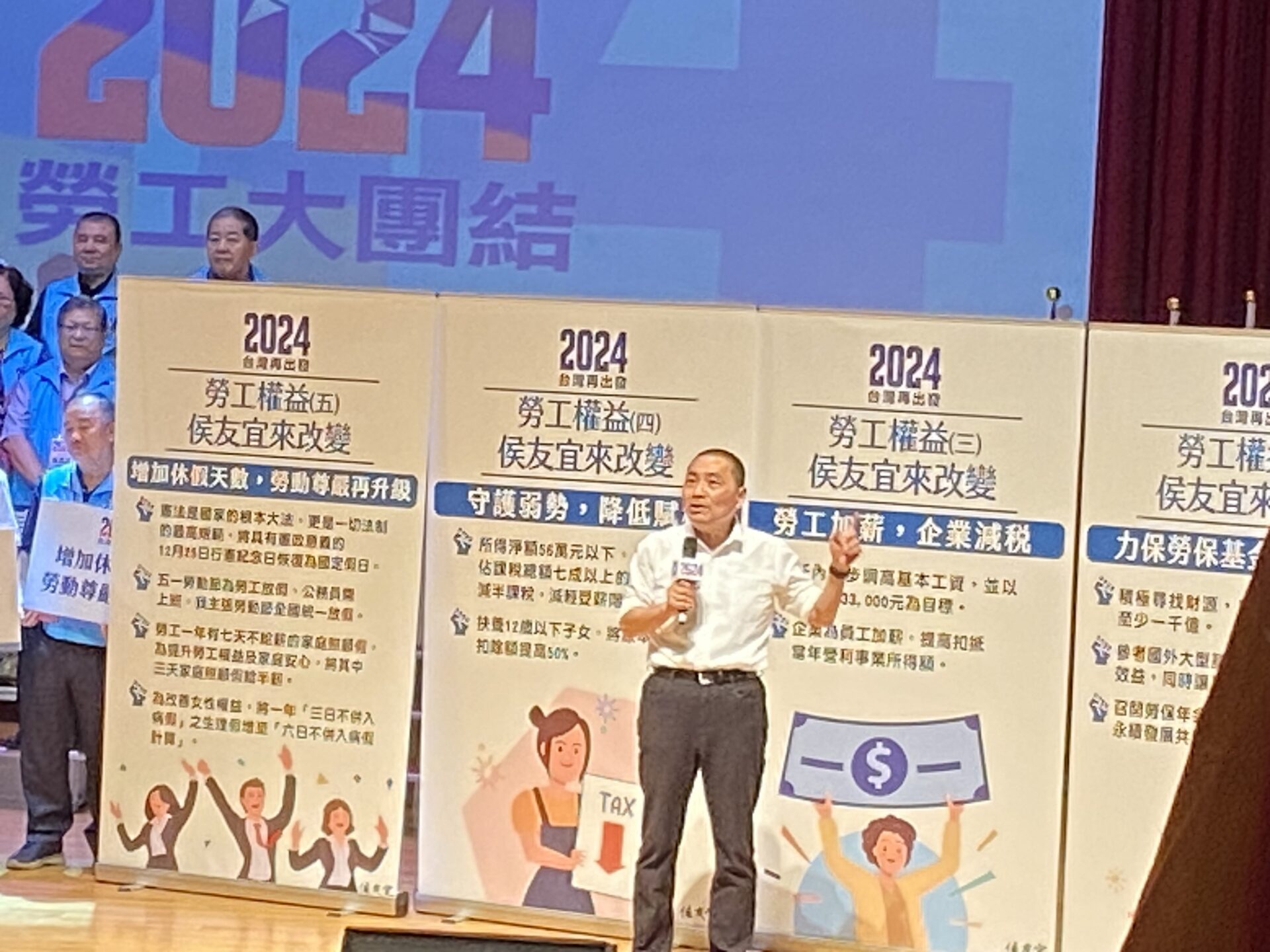 侯友宜說,民進黨政府長年漠視勞工權益,踐踏勞工尊嚴,改革刻不容緩,他上任後,將立刻推動5大勞工政策: