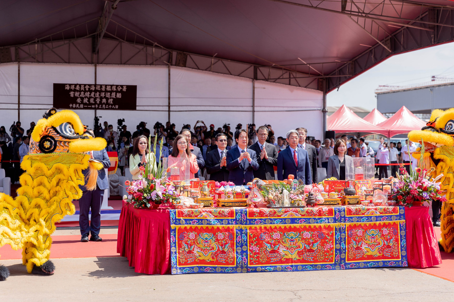 台灣國際造船股份有限公司(以下簡稱台船公司,股號:2208)承造海洋委員會海巡署艦隊分署6艘高緯度遠洋巡護船,首艘船安龍典禮於今(28)日上午10時舉行。由總統賴清德先生主持,率同海洋委員會管碧玲主任委員、經濟部國營司胡文中司長、台船公司黃正弘董事長,並在高雄市政府王宏榮副祕書長、海巡署張忠龍署長、海巡之友總會胡惠森總會長及各界賢達人士見證下,參與台船公司高雄廠「首艘高緯度遠洋巡護船安放龍骨典禮祈福儀式」活動。