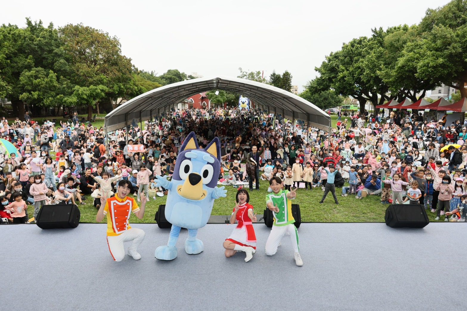 欒局長指出,今年活動以「寶貝音樂冒險」為主題,打造豐富的舞台表演、音樂闖關活動,一連兩天活動特別來賓「妙妙犬布麗」與YOYO家族哥哥姐姐帶來耳熟能詳兒歌金曲,吸引親子現場大聲哼唱,場面溫馨熱鬧,此外,領先全台設置的布麗氣偶,成為全場焦點,吸引大小朋友合影。
