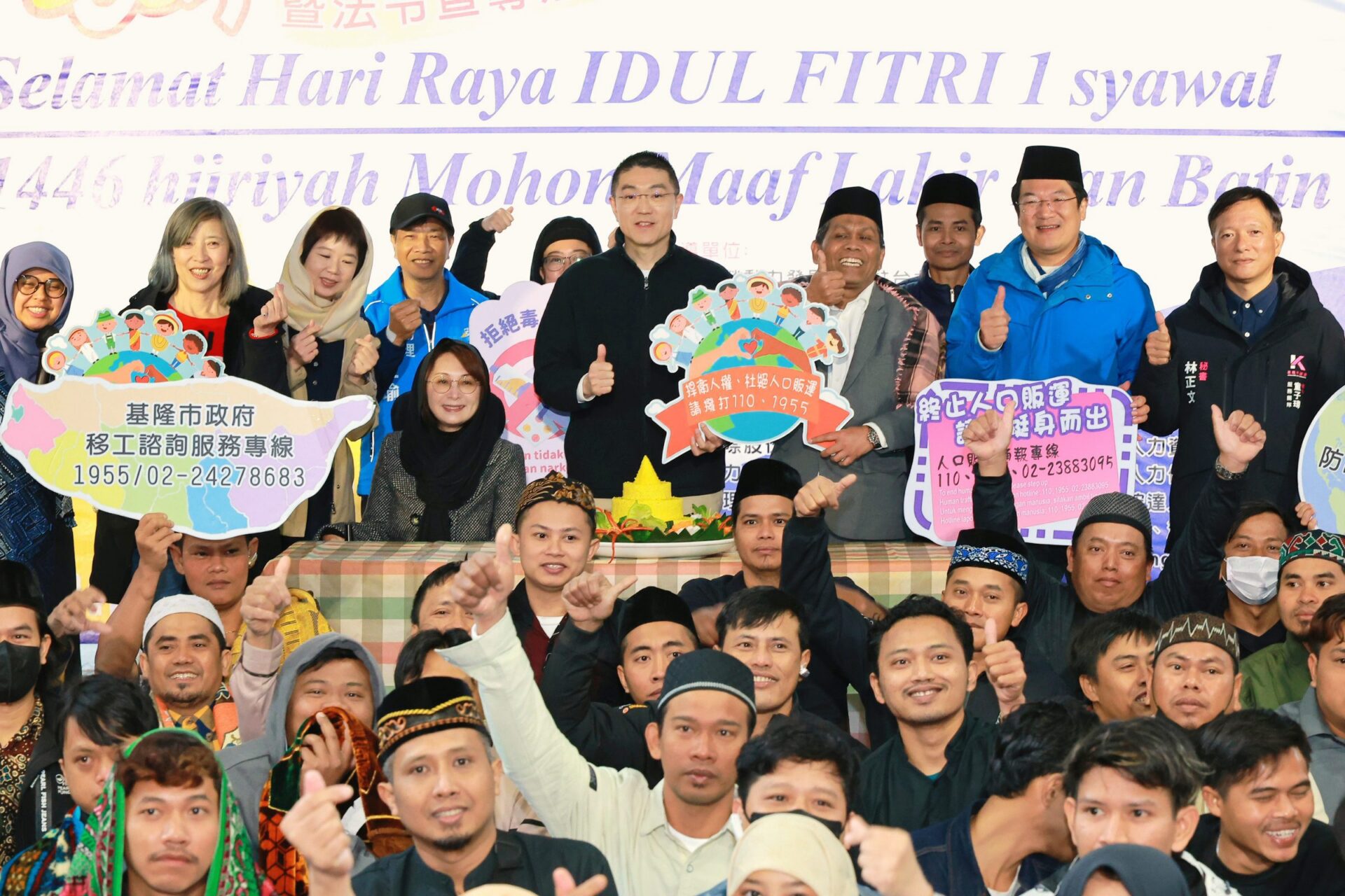 基隆市政府社會處今(31)日上午在城際轉運站廣場舉辦開齋節(Eid al-Fitr)慶祝活動,市長謝國樑率領社會處長楊玉欣、民政處長張淵翔、兒少處長林麗蟬等多名市府團隊成員熱情參與,恭喜大家「齋功圓滿」,並共同感受節日的喜悅,市府團隊將作為新住民的後盾,期許讓基隆成為亞洲最有愛的城市,現場數百名穆斯林朋友共同參與,氣氛既肅穆又歡欣。