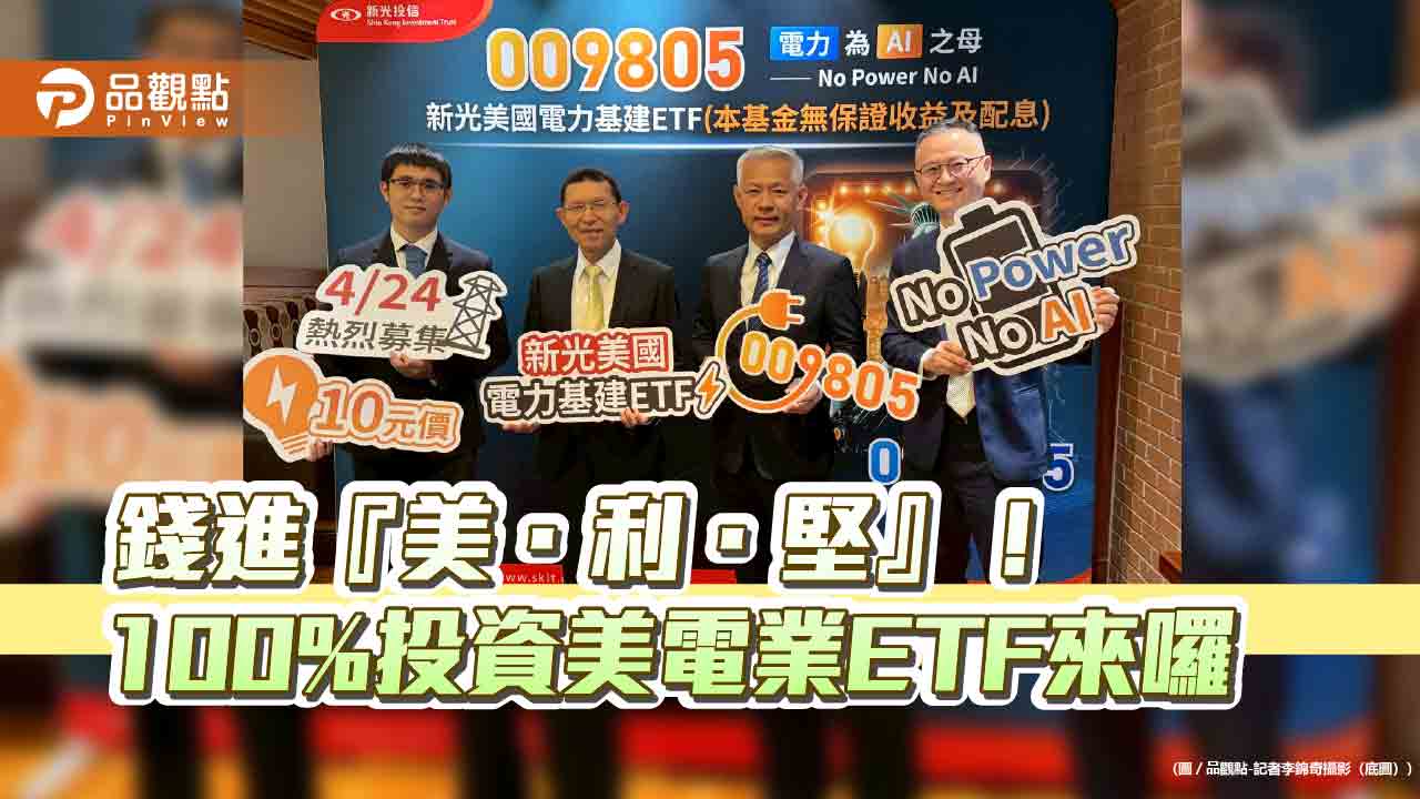 全市場第一檔100%投資美國電力產業的美股ETF來囉!新光投信24日將募集新光美國電力基建ETF(009805),採季配息、10元發行價,提供一般民眾參與被動投資美國電力產業機會。