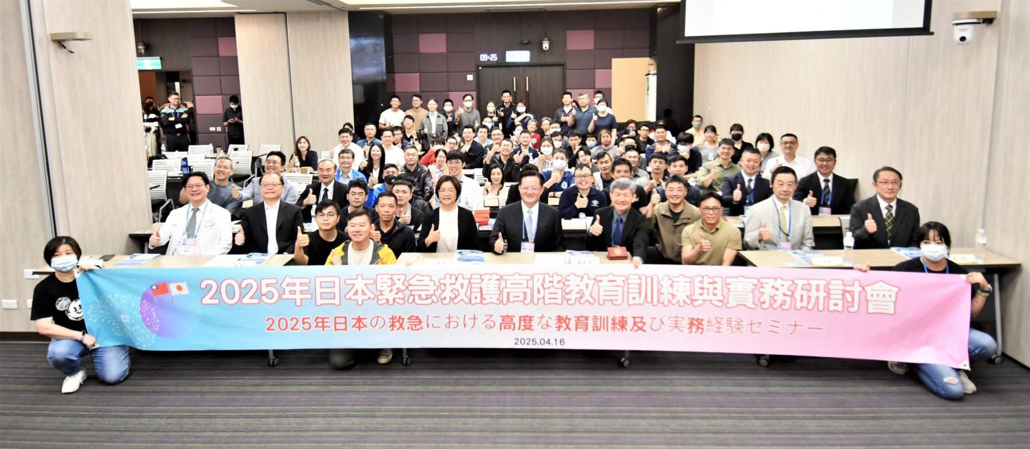 此次研討會邀請日本九州研修所所長佐藤敏行與課長板山隆志,分享日本在緊急救護教育訓練的規劃與管理;另由北九州市消防局急救部長森成司及股長景山拓二,介紹實務救護操作與AI技術在災害現場的應用。內政部消防署長蕭煥章、彰化基督教醫院總院長陳穆寬皆出席活動,與消防、醫療專業人員一同吸收國際新知。