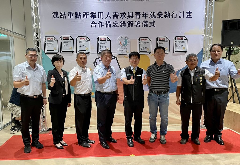 在經濟轉型與發展的關鍵時刻,勞動部勞動力發展署雲嘉南分署與雲嘉南轄區內的廠商協進會、產業園區服務中心、投資策進會等產業界重量級合作夥伴攜手,在位於台南的青年職涯發展中心,共同簽署了「連結重點產業用人需求與青年就業執行計畫合作備忘錄」,透過整合既有就業服務及職業訓練等資源及措施,結合產業公協會調查掌握重點產業職缺,以引導青年瞭解產業樣貌及用人需求,提升青年投入重點產業就業,也為產業補足人力缺口!