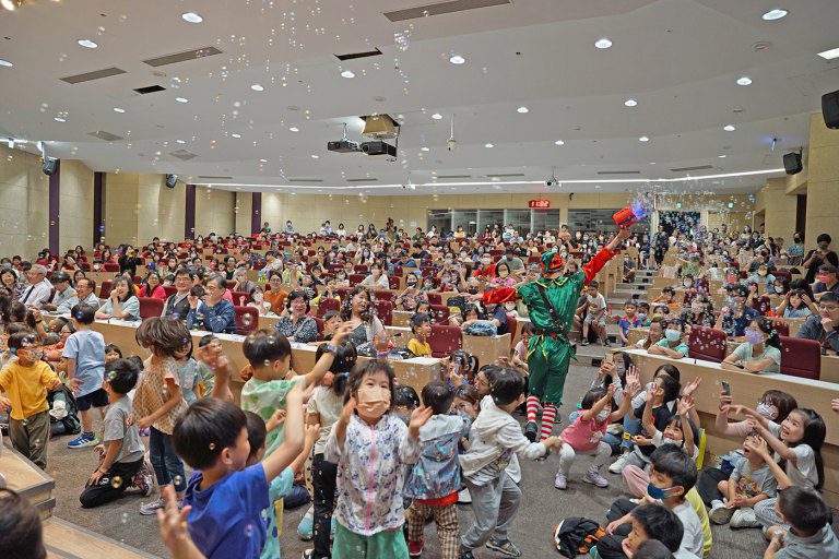 19日為定向悅讀主題活動日,舉辦繪本嘉年華會、兒童劇場及繪本作家講座,以定向運動模式開啟閱讀探險,是讀者今年不可錯過的閱讀活動!開幕場由《禮物盒兒童劇團》帶來趣味互動演出,表演精彩劇碼《繪本村的危機》,熱情的大朋友小朋友們把國資圖的國際會議廳擠爆,當演員喊出:「小精靈們~」,現場小朋友立即以震耳欲聾的聲音回復:「在這裡」,劇團用繪本帶領大小朋友一起走進故事情境。