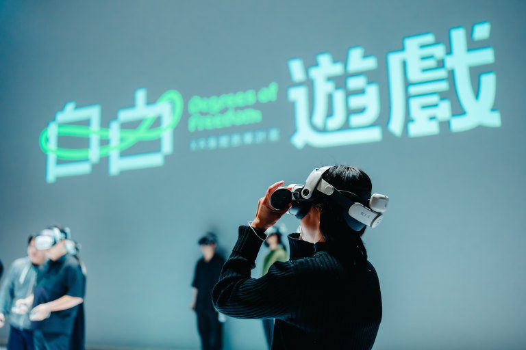 ▲科技賦予人們自由實現天馬行空的想像,卻也不知不覺地無法自拔、成癮其中,因此希望與觀眾一同探索與思考,邀請觀眾分別擔任無畏探索者與全知見證者,透過VR遊戲共同完成一個自由的音樂舞蹈作品。(圖╱台中歌劇院提供)