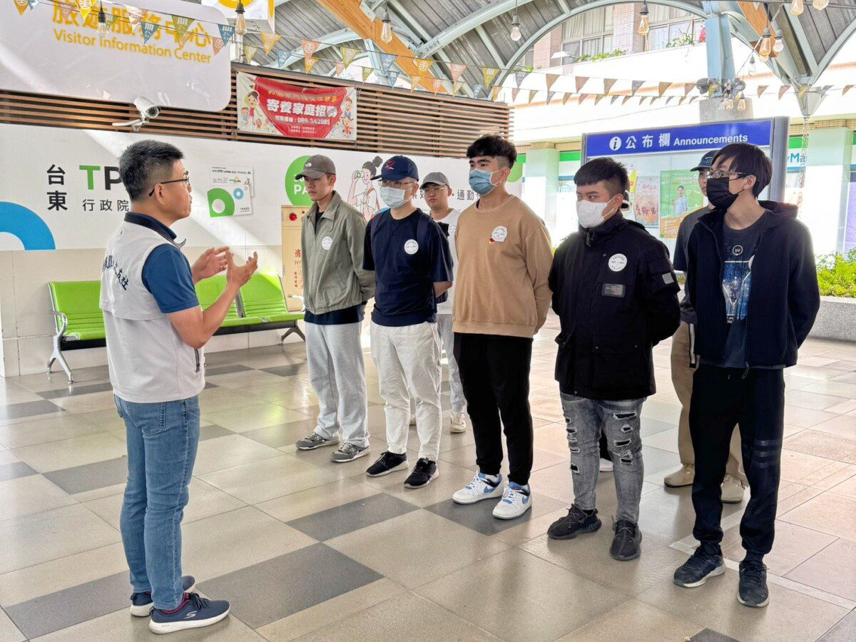 臺東縣政府於4月17日歡送一般替代役第264梯次役男入營,報到現場由縣府兵役科人員為役男量測額溫,並填寫入營相關資料;軍人服務站長曾仁政一早前往臺東火車站,向即將赴臺中成功嶺入伍的役男,發放每人一張軍友服務卡,同時介紹軍人服務站服務項目,宣導服役期間注意事項及權益,希望役男入營後應立即將部隊單位及幹部聯繫電話告知家屬報平安,以利家屬與部隊雙向聯繫,防止遭詐騙情事發生。