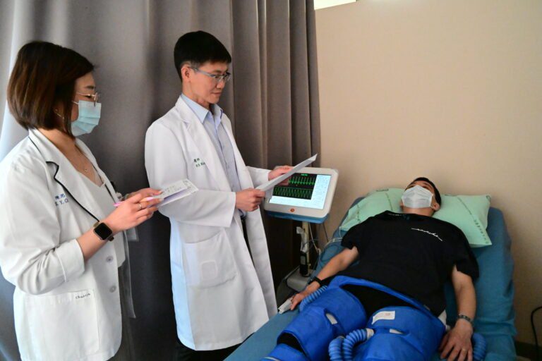 郭勛南進一步說明,體外反博治療是一項非侵入性心血管治療,透過氣壓裝置協助血液循環,提升心臟供氧效率。患者穿戴特製氣壓袖套,透過規律的壓縮與釋放動作,增加主動脈舒張壓、減少收縮壓,在不加重心臟負擔的前提下,提升冠狀動脈血流量,達到保護與強化心臟功能的效果。