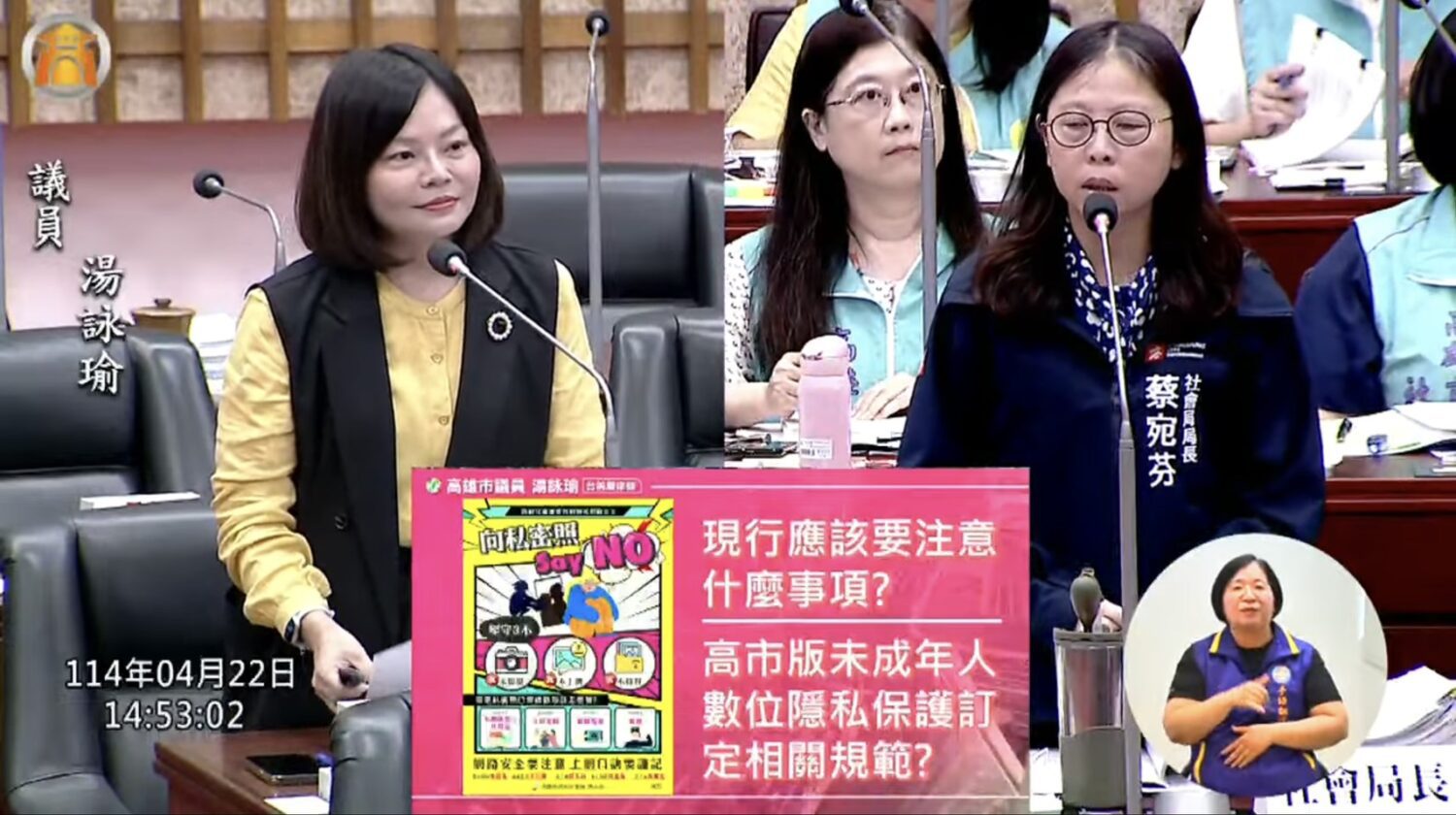 【今傳媒/記者李祖東報導】高雄市議員湯詠瑜今(22)日社政部門質詢,室內外工程安全問題,希望市府更積極嚴格要求,針對兒童網路隱私權,建議以數位隱私指引保護;也應重視中高齡及高齡者尋找就業過程中遇到的瓶頸,避免遇到不公平之對待;並關注老人政策建議應盤點現行落差再升級。