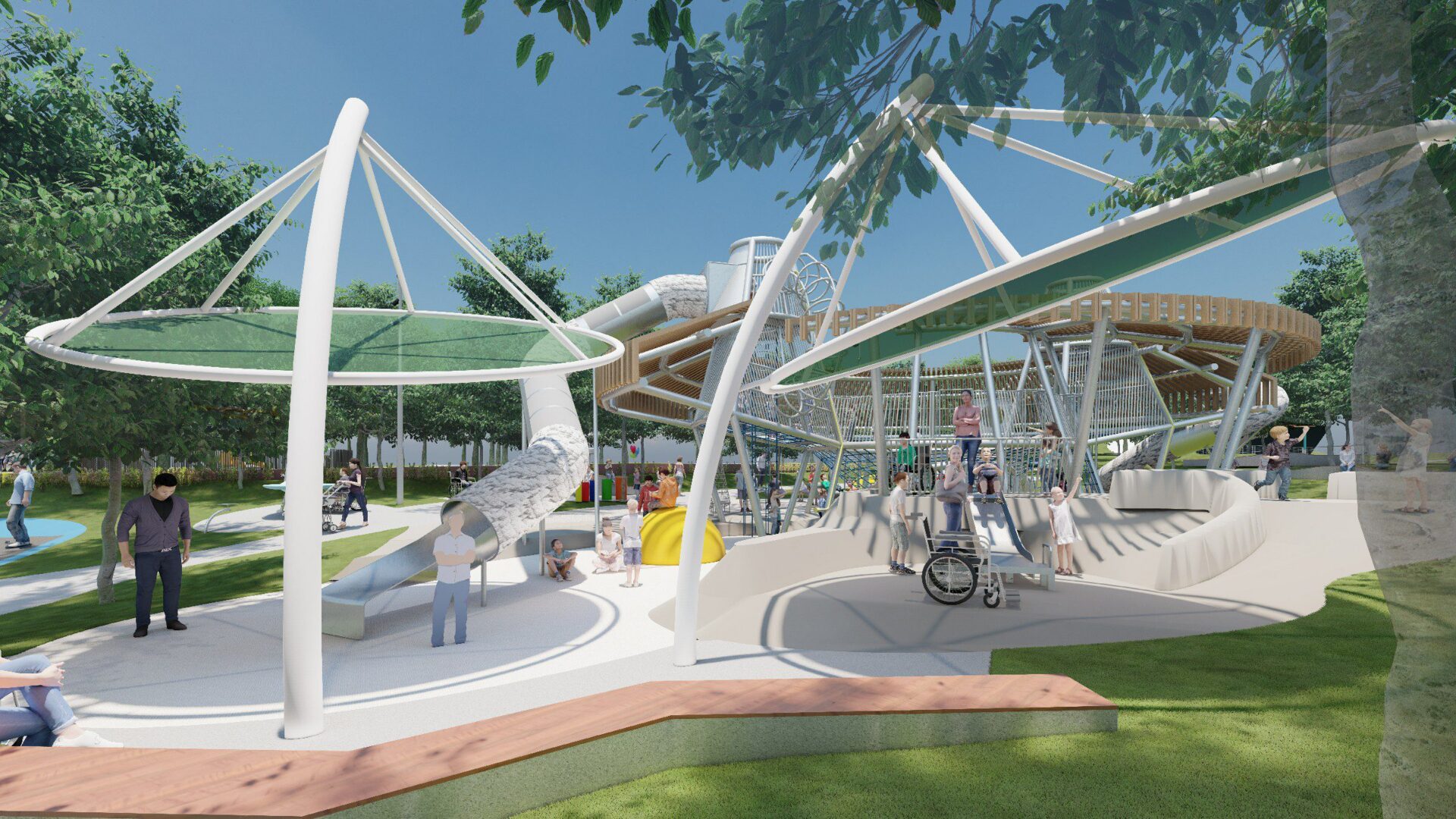 建設局融合飛行主題與共融理念投入400萬元增設大型遮蔭設施