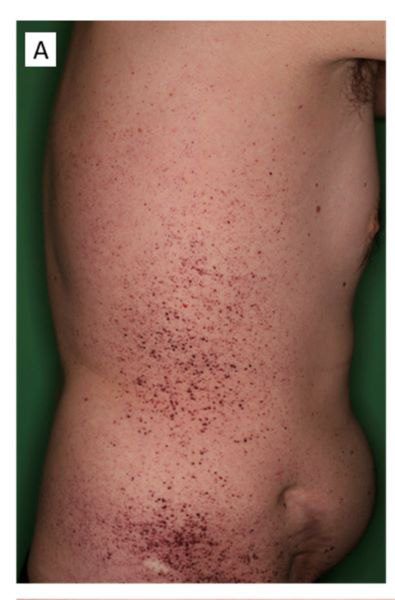 ▲法布瑞氏症的皮膚病灶常出現在髂腰際。(圖/記者蔣彤雲攝)