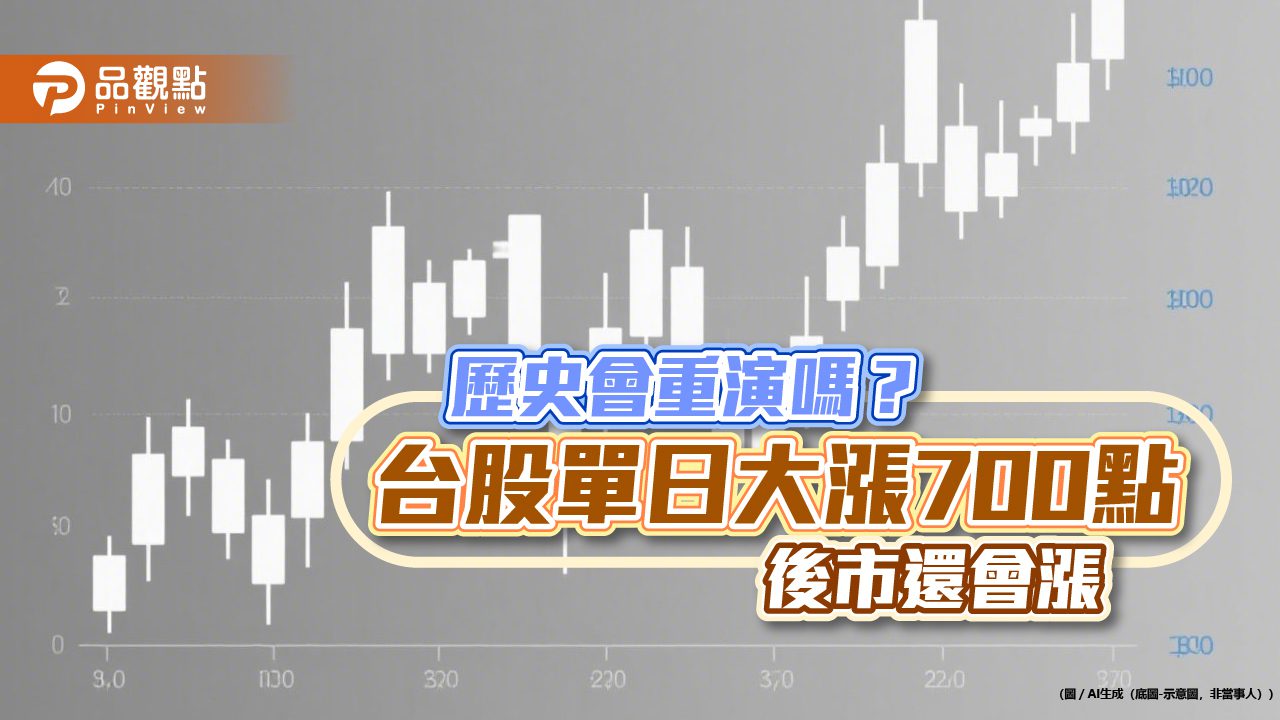 台股昨(23)日大漲845點,創下史上單日第二大漲點、盤中第三大漲點。雖然今天沒有持續強攻,但群益投信台股主動ETF團隊統計過往,發現單日漲點700點以上共有4次,前3次的後5日、10日、15日、30日、45日上漲機率為百分百,平均漲幅分別為2.67%、5.36%、5.41%、6.74%、8.75%,抱股時間越久,平均漲幅越高。