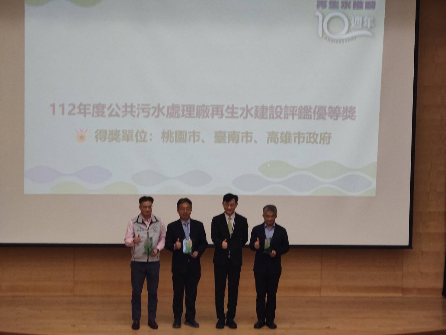 桃園市政府榮獲全國「112度公共污水處理廠再生水建設評鑑作業-優等獎」的最高殊榮。圖:水務局提供