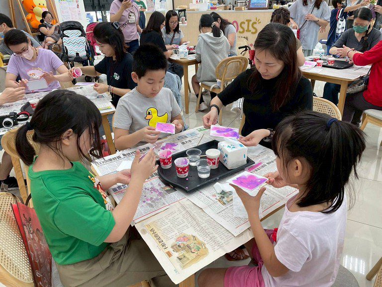 本次市集活動提供本中心培力姊妹、單親婦女、低收/中低收等身分之婦女或公益團體為優先設攤機會,共招募17攤,含培力姊妹8攤及本市市民9攤。此外,市集也精心設計了由培力姊妹帶領的藝術療癒活動,透過壓克力顏料與色彩學的結合,讓參與者能夠感受情緒的釋放與轉化。藉由流體畫技法,將內心的感受具象化為色彩,進而達到自我療癒的效果。