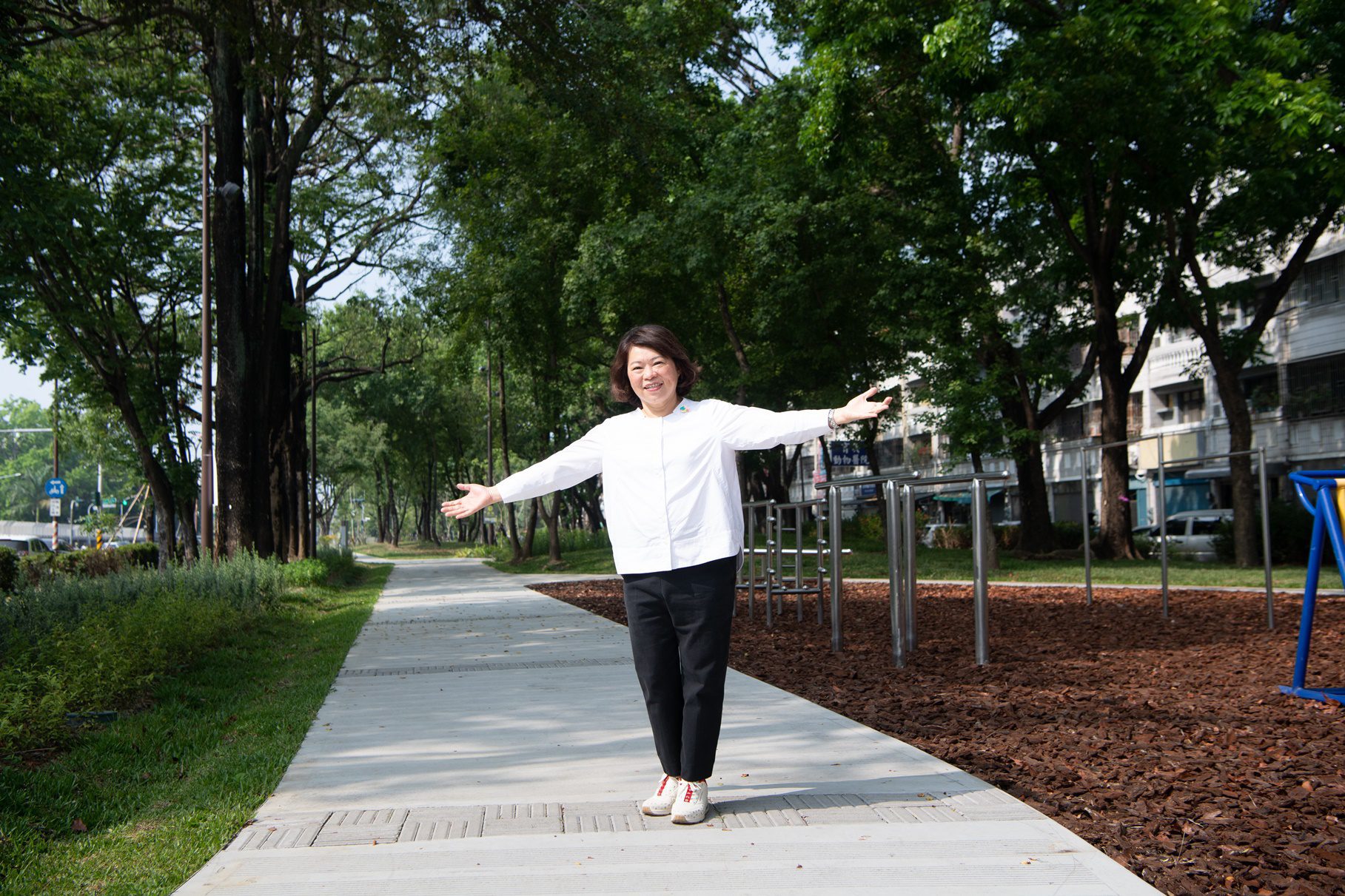 黃敏惠表示,嘉義市人口密度為全國第二,市府升級城市間公園環境,透過串聯與整合形塑城市綠廊,提供市民運動、休憩的空間。「道將圳水綠廊道營造第二期工程」,不僅重視市民實際使用的便利與舒適,同時也引進「綠廊、水廊、風廊」概念,提升了城市面對極端氣候的衝擊的韌性,兼顧景觀與安全的公園空間營造,也提供了更優質生活環境。「穿城之水」的營造,整體設計融入「木都」意象,打造人本精神、無障礙設施、間接照明與簡約導覽系統兼顧所有年齡層使用者的需求,成為白天明亮宜人、夜晚友善的綠色生活場域。「穿城之水 道將圳水綠廊道」不僅代表著都市空間的提升,更象徵著嘉義市邁向宜居永續城市的重要一步。
