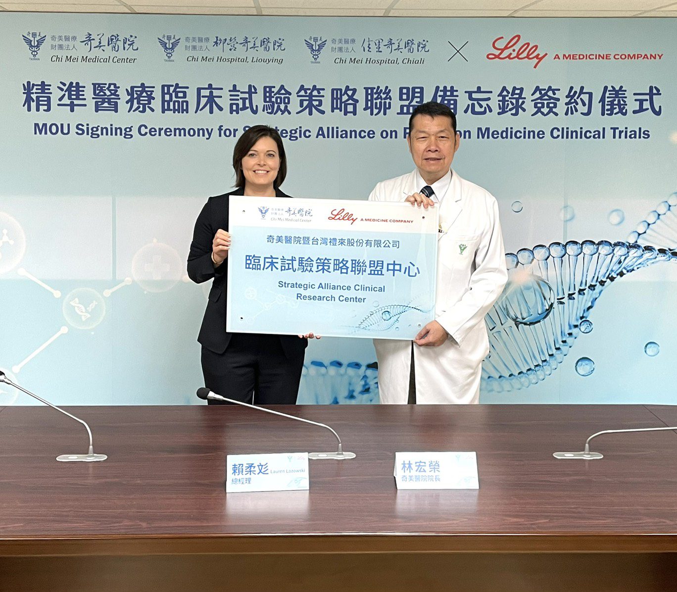 奇美醫院院長林宏榮表示,奇美醫療體系與台灣禮來股份有限公司已合作超過15年,此次與台灣禮來公司再度深化合作,雙方以「基因檢測」、「預防醫學」、「分散式臨床試驗(DCT)」為主軸的臨床試驗策略聯盟,不僅結合奇美醫院精準醫療資源與台灣禮來公司的研發實力,秉持「拔刀相助、群策群力、精準專業」的精神,落實以病人為核心的醫療理念。
