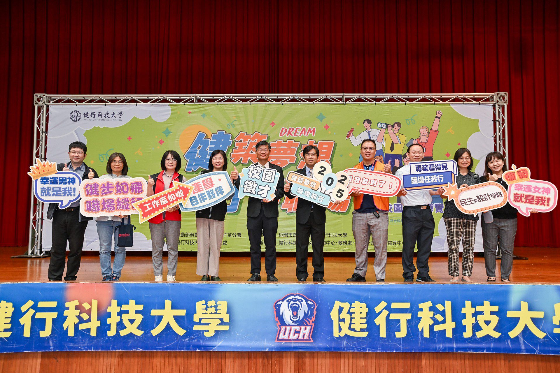 桃園市健行科技大學與勞動部勞動力發展署桃竹苗分署、桃園市政府就業職訓服務處,於昨(8)日在健行科技大學體育館共同舉辦「健築夢想 行進職場」2025校園徵才博覽會,計有宏致電子、華城電機、景碩科技股份有限公司、聲寶股份有限公司、日本餐飲業株式会社 KPG HOTEL & RESORT、匯豐汽車、昇恒昌等企業,將近100家優質企業及上市上櫃公司參與,共釋出近2500個就業機會。