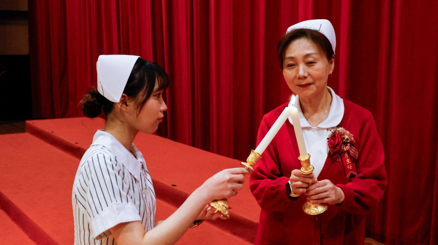 加冠儀式由五十名護理系教師一一為學生配戴象徵南丁格爾精神的護士帽或聽診器,現場還有8位同為護理專業出身的家長親自為自己的孩子加冠,傳承救人使命,場面隆重且感人。