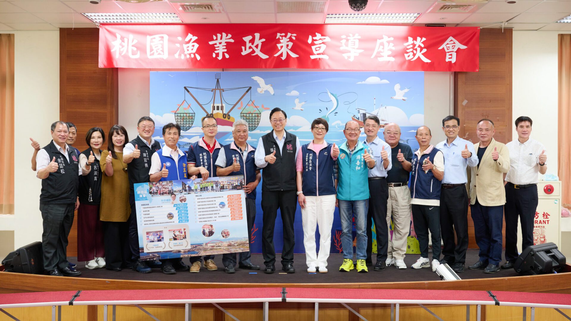 桃園市政府向來注重桃園漁業漁港環境改善再造,市長張善政今(9)日出席桃園區漁會政策宣導座談暨彰化區漁會聯誼活動,會中向漁民報告,上任至今桃園市政府挹注桃園區漁業發展超過1億9000萬元經費,改善漁港環境及漁港北岸直銷中心新建工程;張善政也親自頒贈獎牌及木匾,恭賀理事長陳義成、常務監事劉亞琪、總幹事李俊彥等47位新選任代表上任,期許桃園區漁會績效長紅。