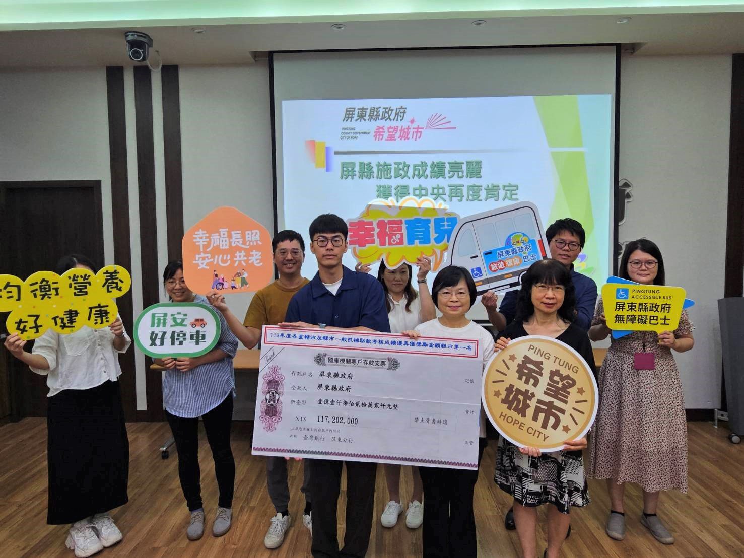 【今傳媒/記者李祖東報導】113年度中央對直轄市與縣市政府計畫及預算考核,屏東縣政府在社會福利、教育、基本設施、財政績效與年度預算編製及執行四大面向成績均超過80分,獲得獎勵金額度居縣市組排名第一,全國第三,總計獲配增加一般性補助款1億1,720萬2,000元,縣府團隊施政亮麗並交出亮眼成績單!