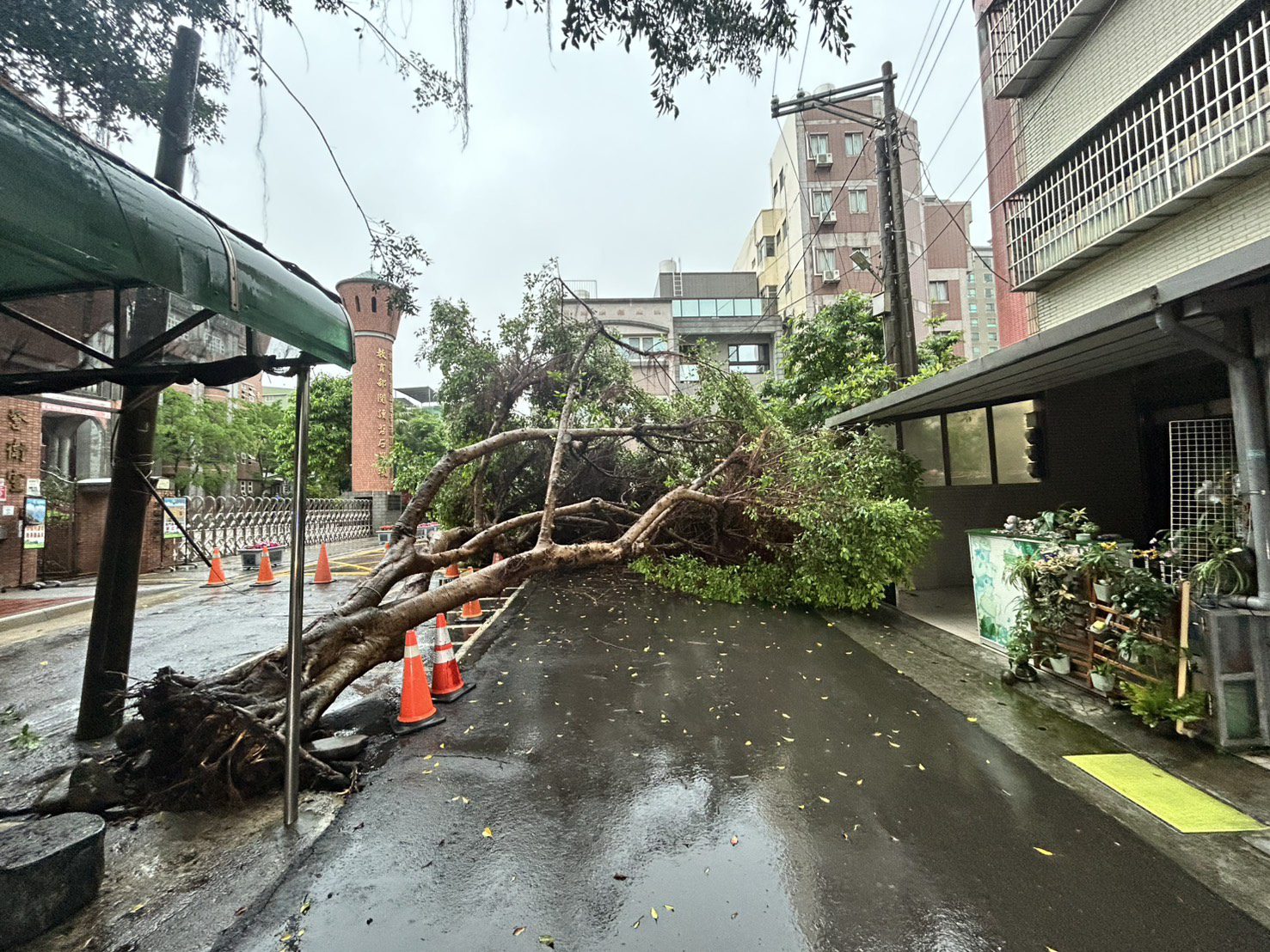龜山幸福國小前路樹倒塌 連根拔起阻擋交通警方疏導中