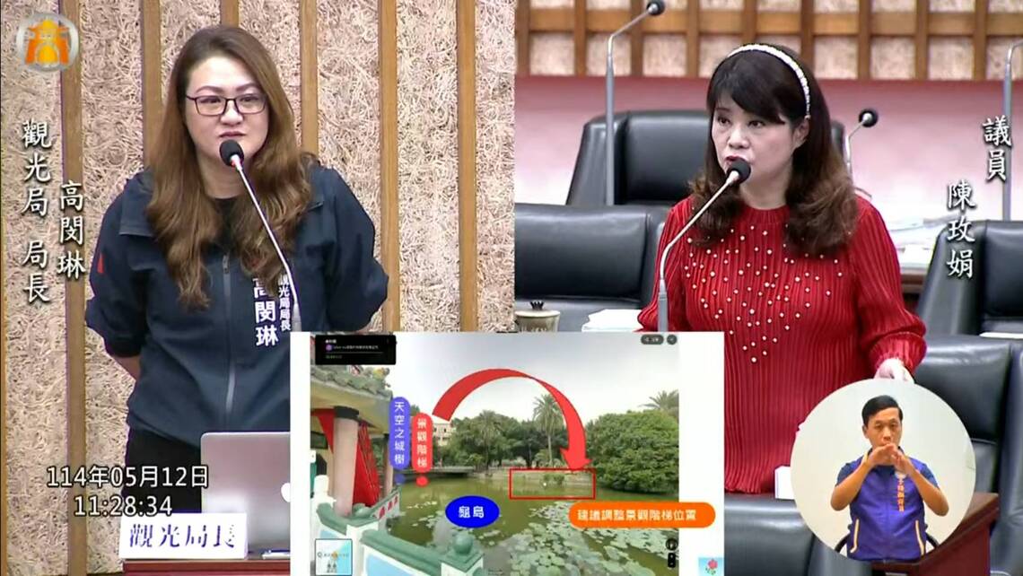 【漾新聞記者陳雯萍/高雄報導】高雄市議員陳玫娟今(12)日於總質詢中,聚焦左營蓮池潭環潭步道最後一哩路的環境營造工程,強調應以圈圍方式設置龜池、保留天空之城樹及原有木棧道,兼顧生態、景觀與遊憩安全,打造人行與自行車友善的圓滿步道。