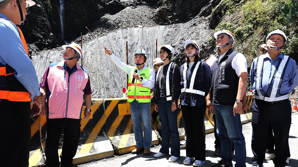 南投縣長許淑華於5月13日率副縣長王瑞德、工務處長張弘岳及原民處代理處長林婷玉,前往仁愛鄉投85線7K+956處的平靜橋災後復建工地視察工程進度,並與都達村、德鹿谷村居民進行座談。許縣長肯定目前工程進度已達25.98%,超前預定時程,並強調施工期間務必落實職業安全衛生,隨後與現場人員一同宣誓遵守職安政策。