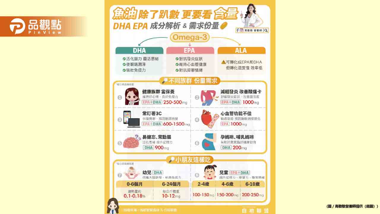 營養師最後提醒大家,市面上魚油百百款,建議選擇高濃度、天然來源、通過檢驗,吃的有效又安心最重要。