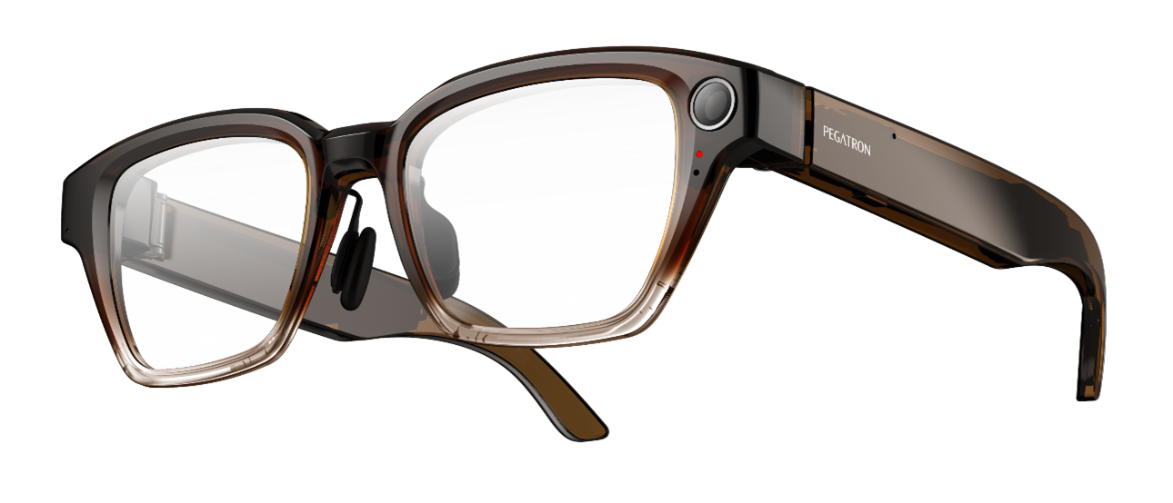 Verge系列AR智能眼鏡(如下圖,和碩提供)特色,包括單眼超亮Micro LED顯示器以及應用 AMAT和Celled最新光子先進技術的高效率超輕量光波導片。此設計搭載Qualcomm AR1 Gen1 平台,全機重量低於45克,強化全天舒適性和可佩戴性。