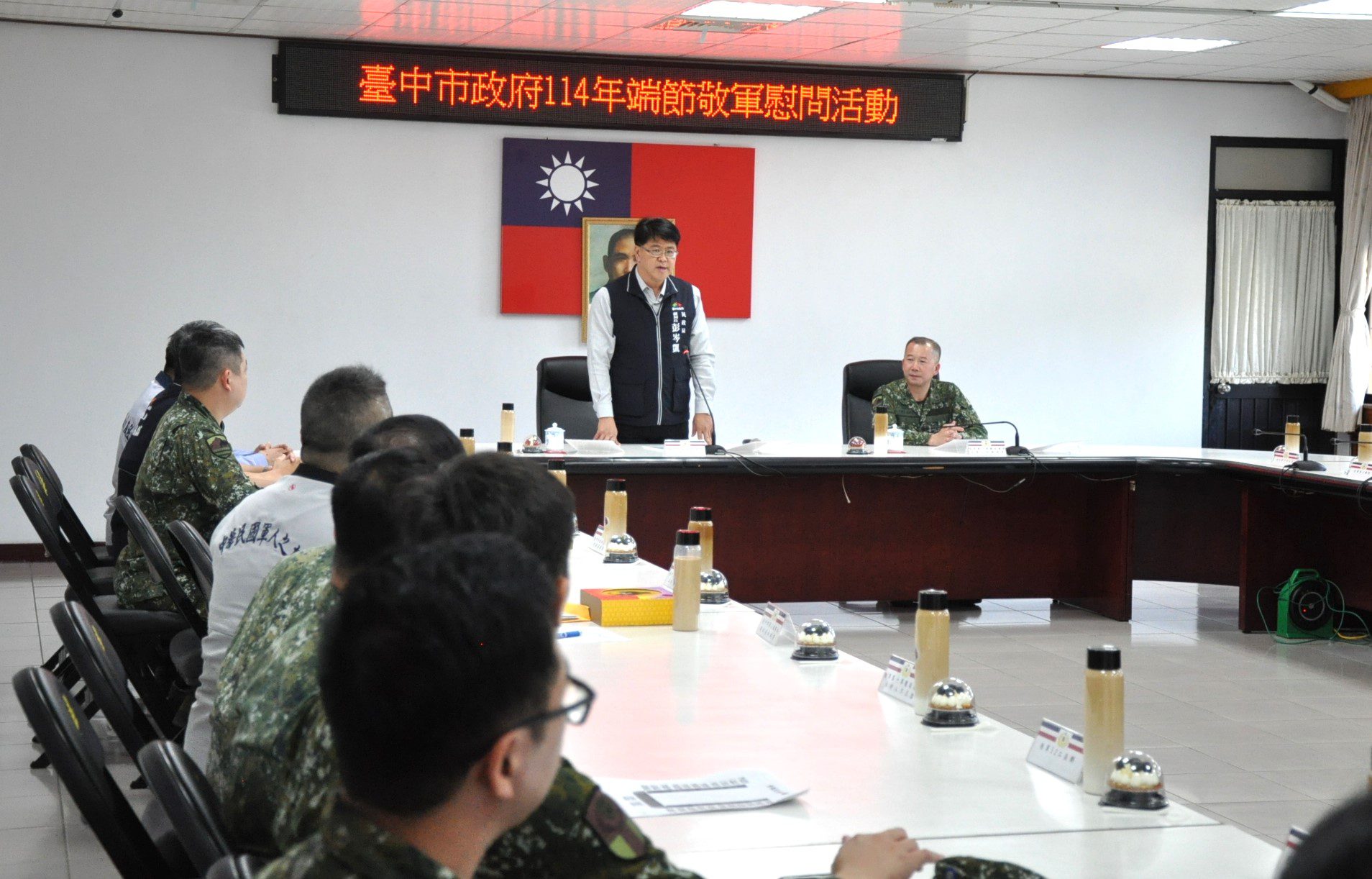 端午佳節將至,感謝轄內駐軍長期協助市政推動及災害防救的付出與貢獻,台中市政府民政局副局長彭岑凱代表市長盧秀燕今(20)日前往台中市後備指揮部,慰勞陸軍第十軍團等40個駐軍單位,並致贈加菜金83萬元。彭副局長表示,感謝國軍弟兄上下同心,戮力捍衛家園,讓民眾安居樂業,並預祝國軍弟兄端午佳節愉快、家庭幸福美滿。