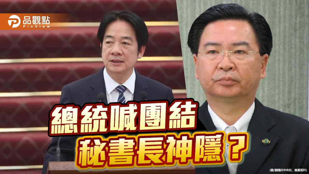 賴清德總統高舉團結大旗,就職周年演說中強調團結、釋出善意,但其麾下官員卻依舊故我,宛如兩套劇本在同一舞台上演出,一個唱白臉,一個扮黑臉。總統說要向在野黨主席進行國安簡報,隔天國安會主帥就避不見面?