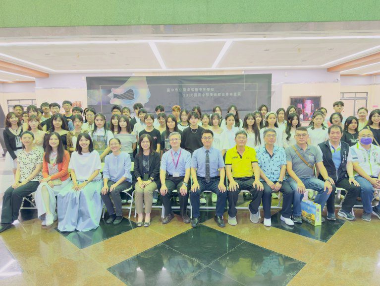▲2025龍津高中聯合畢業畫展開展貴賓師生合影。(圖/龍津高中提供)