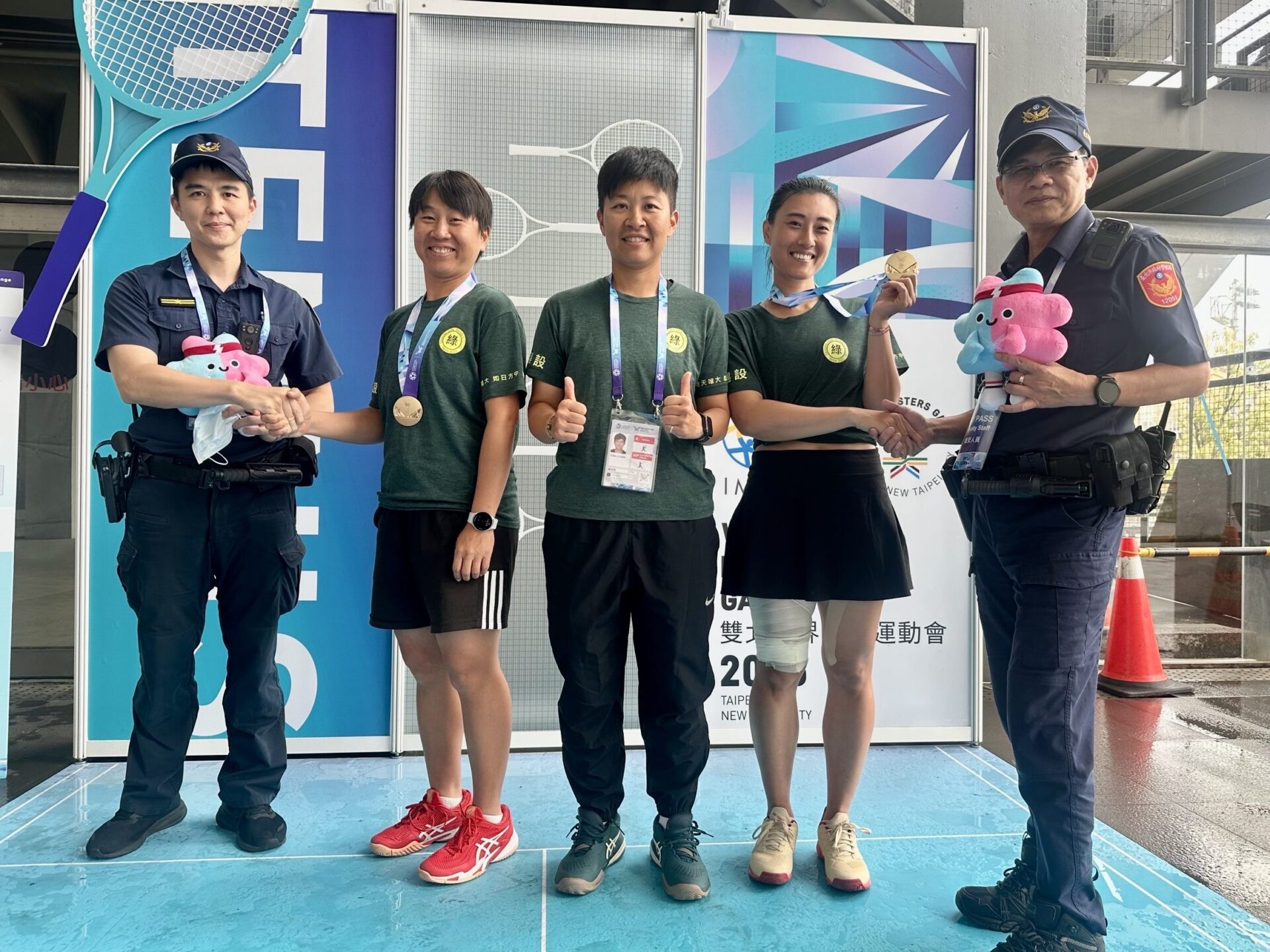 內湖分局執行世壯運網球賽事安檢勤務落實用心,日前獲得30歲組女子公開賽冠軍隊伍「小綠綠隊」陳領隊及吳姓⼂巫姓選手的稱許,表示員警們的細心⼂友善態度及超強記憶力令她們印象非常深刻,相信這場國際賽事,來自世界各地的選手都跟她們一樣感動滿滿。