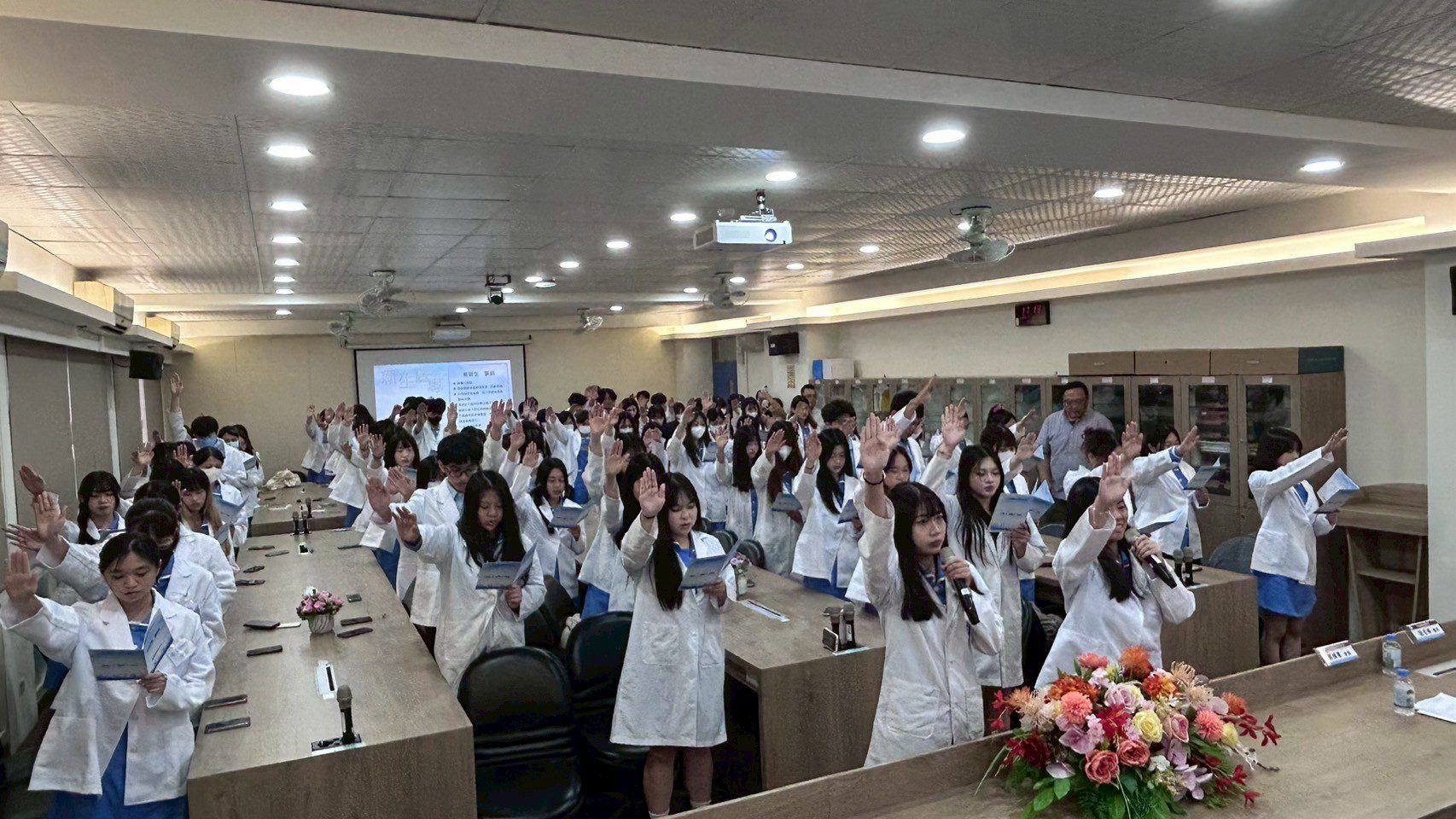 白袍,不僅是穿在身上的制服,更象徵著對專業的承諾與對生命的敬重。傅博軍於致詞中表示,「白袍的背後,是信任與責任的開始。期許同學們懷抱敬意與熱情,讓這場典禮成為邁向專業的關鍵轉折點。」