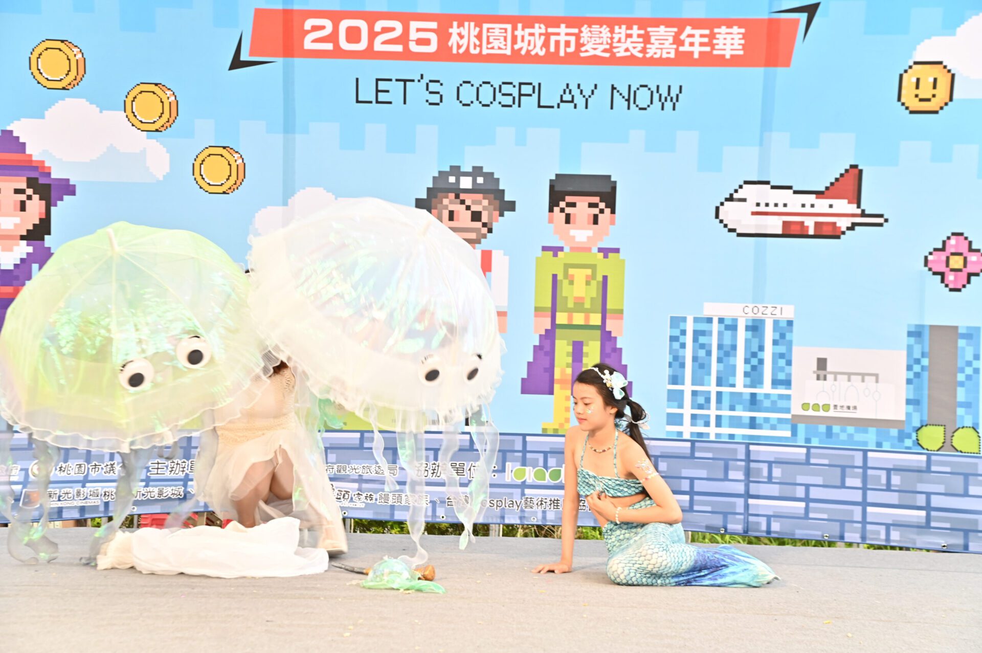 觀光旅遊局表示,去年桃園城市變裝嘉年華於青埔地區舉行,吸引超過3萬名遊客,獲得熱烈迴響。今年嘉年華活動延續與置地廣場桃園合作,主題定為「開始你的變身」,期待遊客無論年齡都能在桃園找到屬於自己的變裝靈感與樂趣。開幕日的海洋主題活動成為最大亮點,百對親子盛裝打扮成美人魚公主、海龜等海洋角色展現創意,ㄚ桃園哥、蜜蜂科長及手信霧隱城等可愛吉祥物人偶也與民眾熱烈互動。
