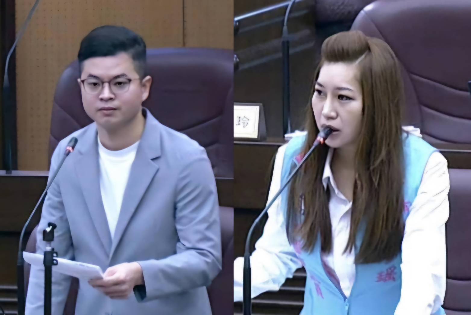 桃園市議會總質詢,無黨籍議員謝美英(左)、段樹文(右)質詢畫面。(圖/議會直播截圖)