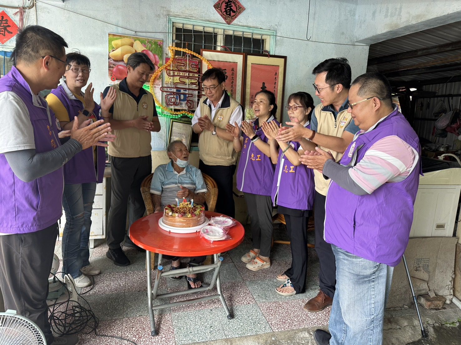 活動當日,不僅準備了生日蛋糕與祝賀禮品,志工大隊更特別安排義剪服務,為戚伯伯修整頭髮,傳達敬意與溫暖。劉處長表示:「戚伯伯是我們社會寶貴的資產,我們由衷地向他致敬,也讓他感受到社會的溫情。」