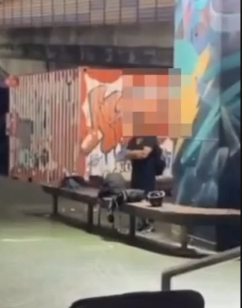 滑板場行竊!黑衣男鬼祟偷包遭家長錄影直擊 警民聯手現場逮人.(圖片翻攝)