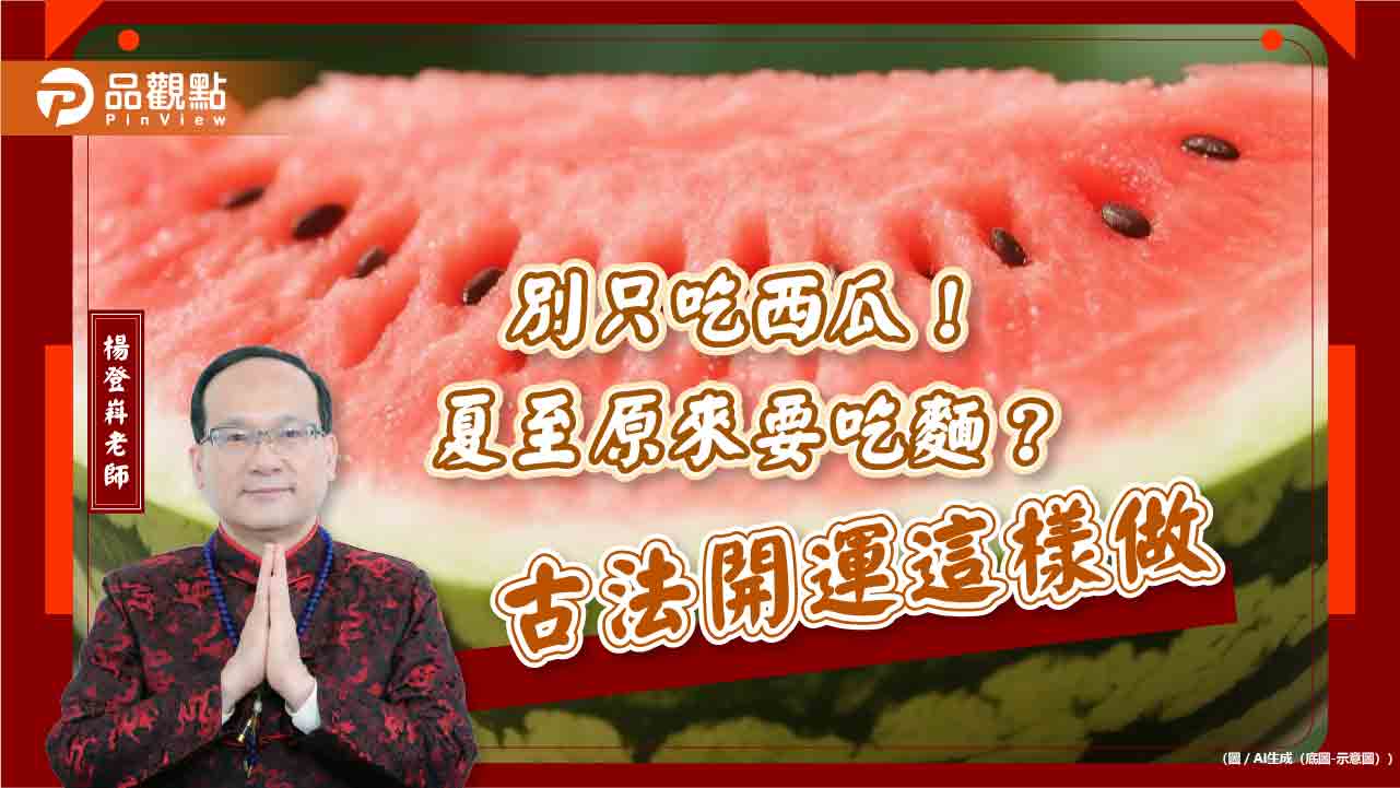 一年中白晝最長的節氣「夏至」將在6月21日正式到來,象徵進入酷熱難耐的盛夏。命理專家楊登嵙提醒民眾,夏至除了是天氣轉變的重要分水嶺,更蘊含多項養生與開運習俗,從飲食到衣著、作息乃至出遊方向,處處皆有學問。