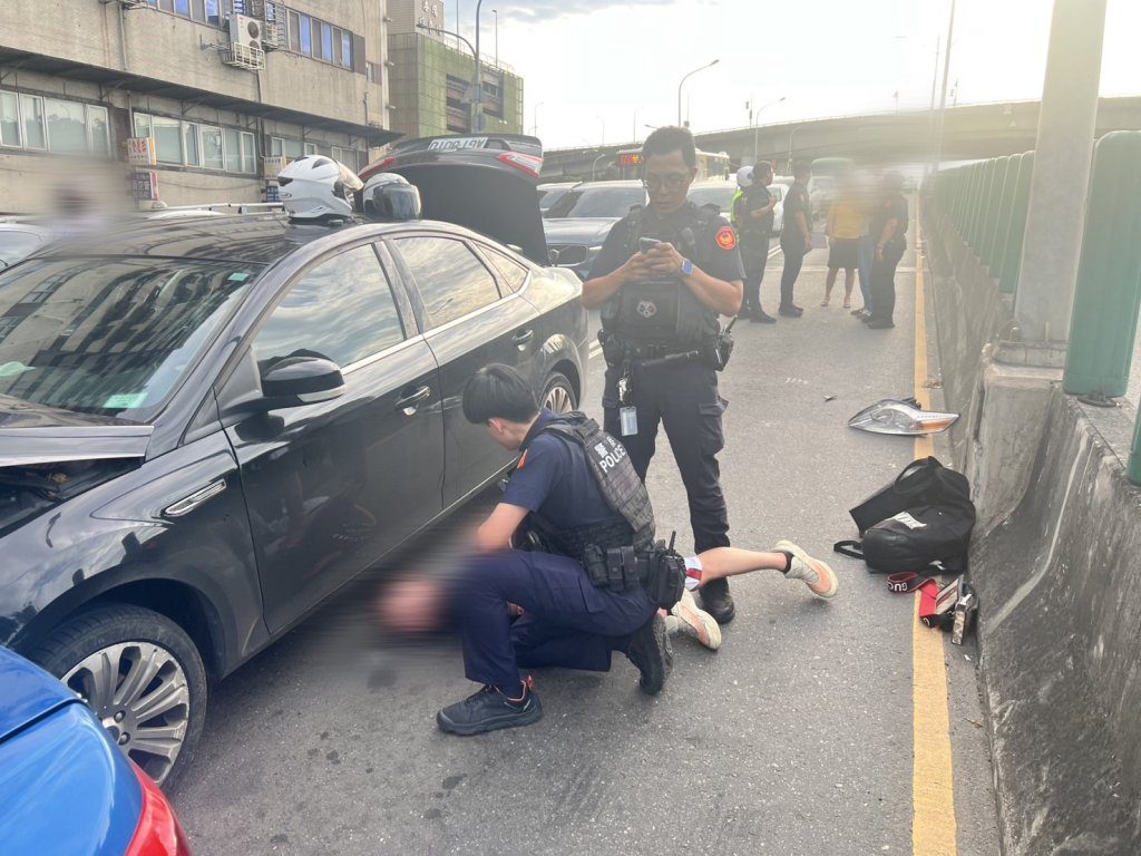 警方獲報忠孝橋發生車禍,隨即派員趕赴現場,調查發現陳男駕車自撞後,先擦撞63歲李姓男子駕駛車輛,隨後又在下橋處連續撞擊60歲徐男、22歲陳男的車輛,接連造成3車受損。